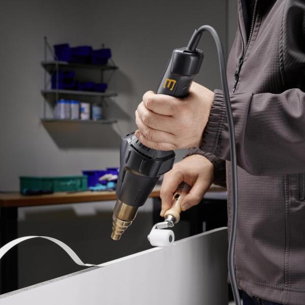 Kis súly és karcsú forma. Ideálissá teszi a hosszan tartó, fáradtság nélküli munkát megközelíthetetlen helyeken. Ponyvák, tehergépkocsi ponyvák hegesztésére. Zsindely, tetőszigetelés hegesztésére. Szárításhoz, olvasztáshoz, lakk, festékek eltávolításához. Ragasztók felviteléhez, zsugorításhoz, forrasztáshoz.